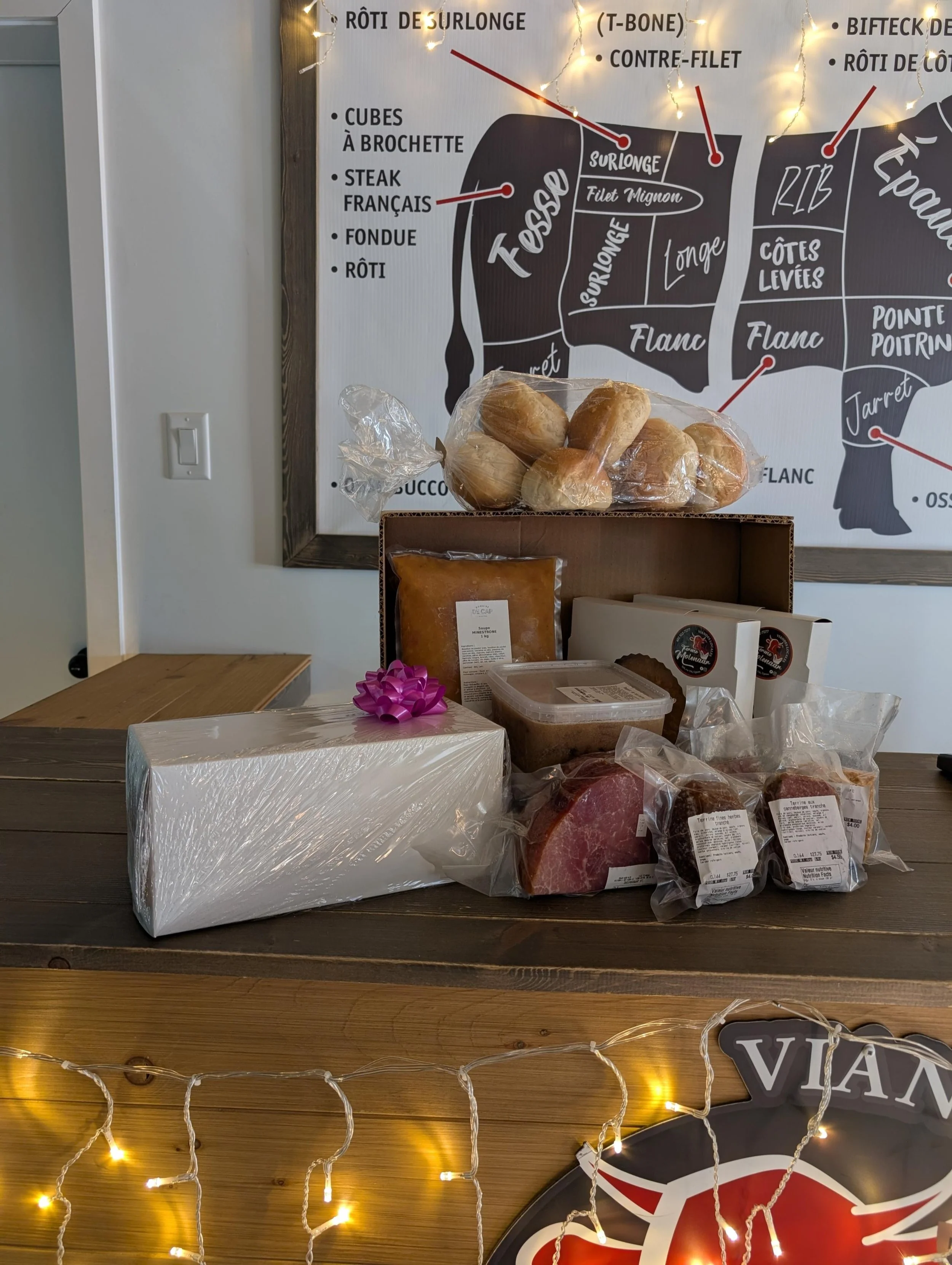 Boutique Catégories : All Boeuf Angus Poulet de grain Saucisses artisanales Porc et bacon Prêt-à-manger Spéciaux All | Boeuf Angus | Poulet de grain | Saucisses artisanales | Porc et bacon | Prêt-à-manger | Spéciaux | Boîte du Temps des Fêtes 145,00 $ Boîte Cabane à sucre Prix promotionnel : 64,00 $ Prix initial : 70,00 $ Promotion Boite La Cochonne 220,00 $ Boeuf entier ou demi-boeuf 6,95 $ Côtelettes fumées 11,81 $ Sold Out Boudin aux pommes 10,90 $ Boudin 10,45 $ Filet mignon de porc mariné souvlaki 11,81 $ Sold Out Côtes levées marinées BBQ 10,45 $ Jambon Midget 7,27 $ Jambon dans la fesse 7,27 $ Jambon Picnic fumé 7,72 $ 11e paquet de porc haché gratuit Prix promotionnel : 59,00 $ Prix initial : 64,90 $ Promotion Rabais de volume porc haché Prix promotionnel : 118,75 $ Prix initial : 147,50 $ Promotion Rabais de volume boeuf haché Prix promotionnel : 175,00 $ Prix initial : 198,75 $ Promotion 11e paquet de boeuf haché gratuit Prix promotionnel : 79,50 $ Prix initial : 87,45 $ Promotion Steak Angus mariné Western 16,49 $ Steak Angus mariné Parisienne 16,49 $ Steak Angus mariné du Chef 16,49 $ Bacon fumé 13,63 $ Tomahawk de boeuf Angus 30,00 $ Bavette de boeuf Angus 26,36 $ Côte de boeuf Angus 12,73 $ Cubes de boeuf Angus 8,50 $ Rib Steak de boeuf Angus (entrecôte) 20,90 $ Contre-filet de boeuf Angus 22,68 $ Faux-filet de boeuf Angus 30,86 $ Poulet de grain entier 4,68 $ Boeuf haché Angus mi-maigre 7,95 $ Porc haché 5,90 $ Filet mignon de porc 11,36 $ Côtes levées 6,81 $ Sold Out Pomme et Bacon 11,36 $ Miel et ail 10,00 $ Miel et moutarde 10,00 $ Sold Out Chorizo épicé 10,00 $ Sold Out Bleuet et érable 10,00 $ Érable 10,00 $ Canneberges 10,00 $ Tomate et basilic 10,00 $ Fines herbes 10,00 $ Italiennes douces 10,00 $ Tomates, olives et fêta 10,00 $ Bacon cheddar 11,36 $ Bacon cheddar sans gluten 10,00 $ Sold Out Brocoli 10,00 $ Sold Out BBQ 10,00 $ Creton de porc 10,00 $ Porc fumé tranché 12,27 $ Saucisson Chorizo 12,72 $ Saucisson Piquant 12,72 $ Saucisson Nordique 12,72 $ Saucisson Jerkey 12,72 $ Saucisson à l'ail 12,72 $ Saucisses fumées (hot-dog) 11,81 $ Ragoût de boulettes de porc (grand format) 6,81 $ Pâté mexicain 14,99 $ Pâté Berger 14,99 $ Tourtière 11,99 $ Sauce spaghetti porc et boeuf Angus (grand format) 6,81 $ Terrine Canneberges 12,61 $ Terrine Porto Amandes 12,61 $ Terrine Fines Herbes 12,61 $ Rillette de porc 11,50 $ Poitrine désossée 10,72 $ Gros poulet de grain entier 4,68 $ Côtelettes désossées 8,17 $ Rôti français de boeuf Angus 11,36 $ Sold Out Côtelettes avec os 6,81 $ Grillades 9,09 $ Viande à fondue de boeuf Angus 15,00 $ Filet mignon de boeuf Angus 49,55 $ Certificat cadeau À partir de 25,00 $ Viande à fondue porc 15,00 $ Osso buco de porc 6,50 $ Rôti de soc (échine) 4,77 $ Sold Out Rôti d'épaule de porc (picnic) 4,77 $